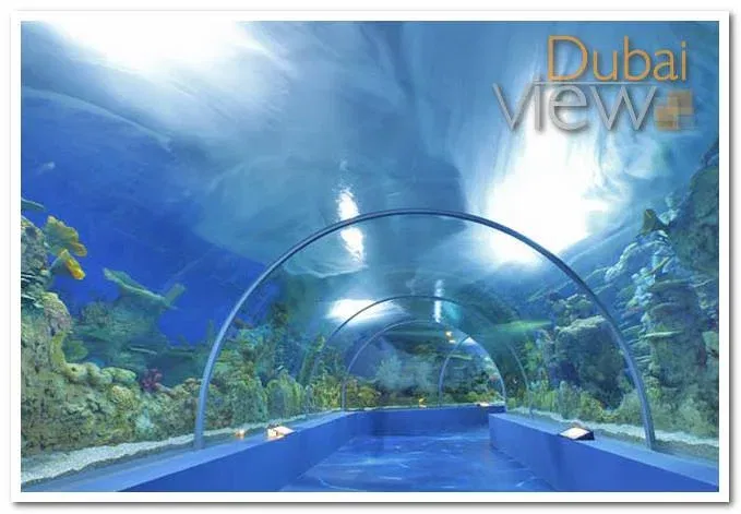 - ممرات أكواريوم المصممة تحت الماء بالكامل لتستطيع رؤية الأسماك والقروش عن طريق الحواجز الزجاجية .